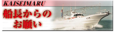 撒き餌はオキアミ3kg一人4枚。刺し餌もオキアミ。他にホタルイカ、スルメイカの短冊(約幅7mm×丈5cm)、サンマの切身(3枚におろし約幅7mmで斜めに丈5cm)も必携!